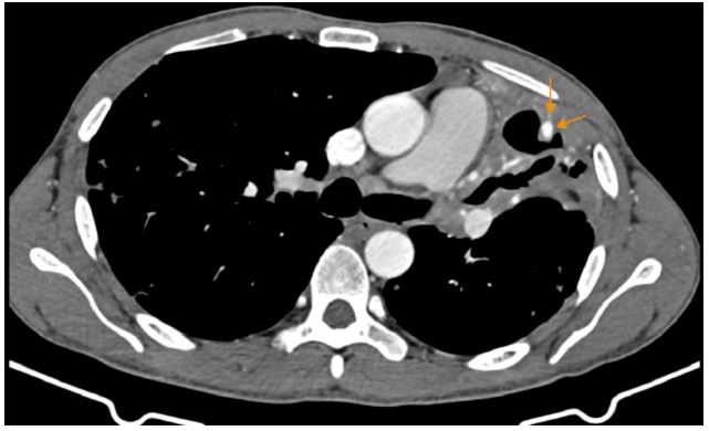 Currently, Computed Tomography (CT) is the primary imaging modality for detecting intrapulmonary artery pseudoaneurysms. In certain cases, the pseudoaneurysm may be better visualized on systemic angiography (including bronchial and non-bronchial systemic arteries) due to the phenomenon of retrograde flow within the pulmonary arterial branches at the lesion site [1,2].