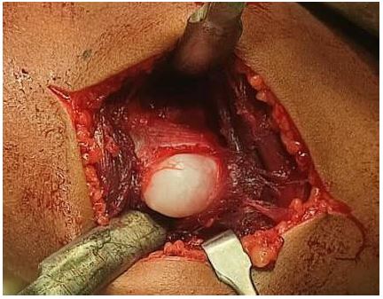 All anatomic landmarks were directly visible through the Modified Gerwin Approach as compared with the remaining approaches, through which only 1 landmark was directly visualized and only 2 of the 3 remaining were palpable through the approach and finally clinical pathology result with complete excision Figure [6].