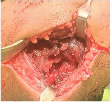 • Proximal humerus exposure: Radial nerve and axillary artery identified and protected (Figure 4).